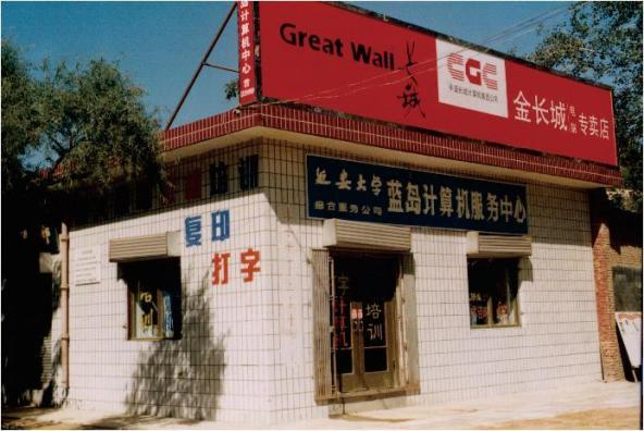 1994年8月,藍島計算機服務(wù)中心于延安市楊家?guī)X成立。主營計算機培訓,金長城電腦銷售。